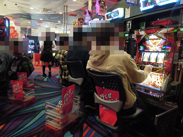 店内をまわっていると、たくさんの笑顔で彩られている沖スロコーナーに目をひかれた。
