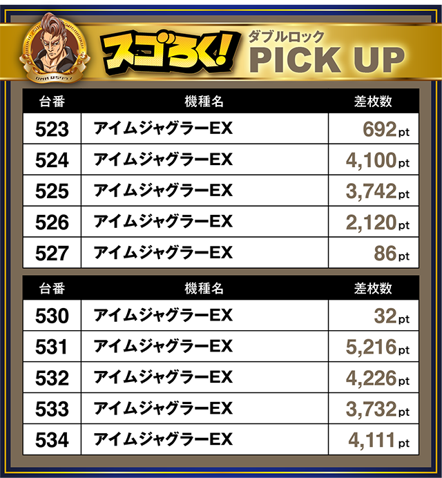 今回は「アイムジャグラーEX」から選んだが、ほかの機種も要チェック!!