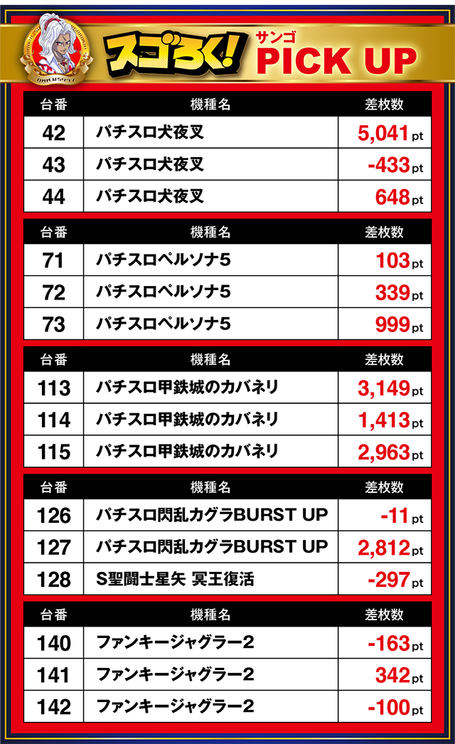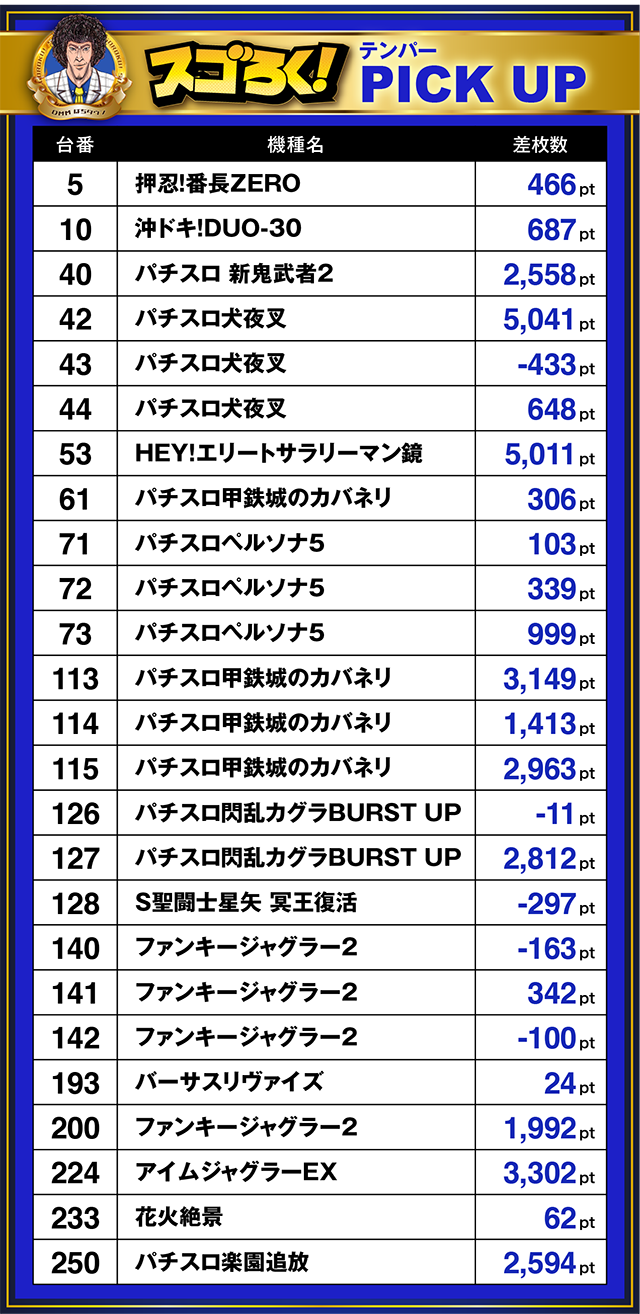 5,000pt以上の台もあったなど、機種のポテンシャルを引き出したプレイヤーもいたぞ。