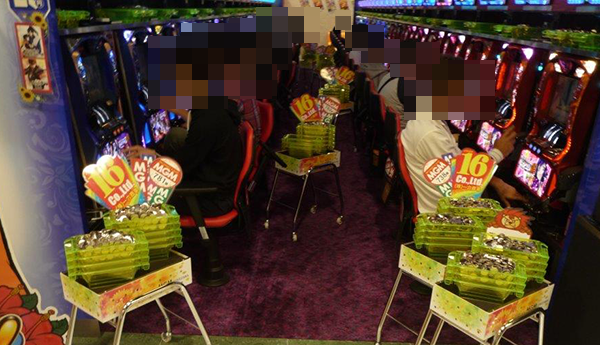 この日は、とくにパチスロが盛況となっており、たくさんのプレイヤーが笑顔で遊技をおこなっていた。