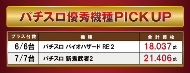 2月7日に実施された『キング観光サウザンド桑名店』の王様伝説の模様をお伝えしよう。今回は6.5号機の中から優秀機種を2機種ピックアップしているのだが、今や人気AT機の一角を担う『パチスロ バイオハザードRE:2』と『パチスロ 新鬼武者2』が挙がっている。2機種ともに合計差枚数は当然ながらプラス。しかも全台がプラスとなった。合計差枚数から1台あたりの平均差枚数を出すとなんと1台あたり約+3,000枚。これがどういう意味をなしているかお分かりだろうか。これぞ完全なる「全台系」と言っても過言ではない。今回はそれくらいの結果となったと言えよう。