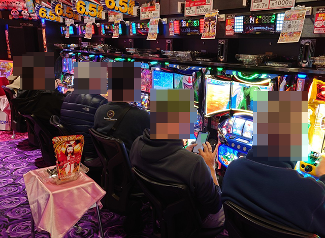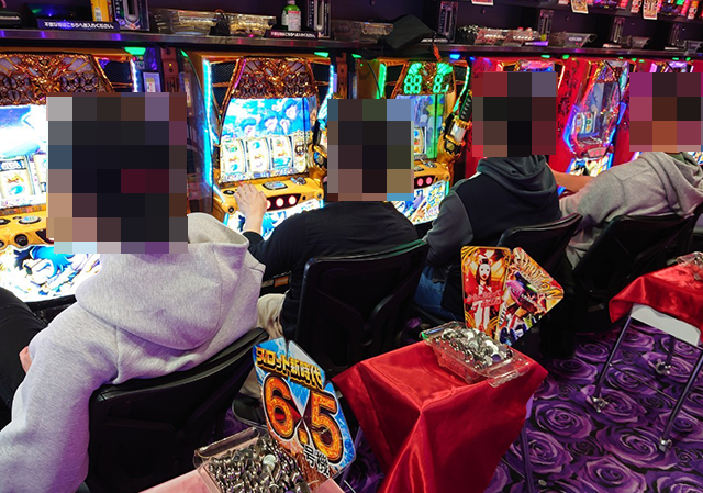 夕方頃のパチスロでは、複数の機種を通して盛り上がっている場所がいくつもあった。