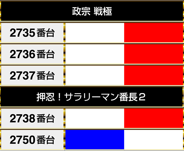 『ハッピージャグラーVIII』と『押忍!番長ZERO』にも4台が連なってプラスptとなる場所があった。