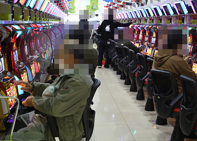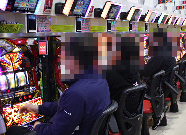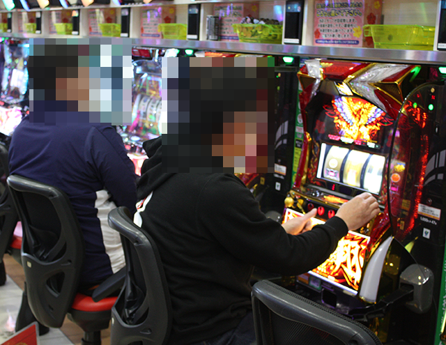 14時頃のハナハナシリーズでは、プレイヤーたちが笑顔で遊技をおこなっていた。