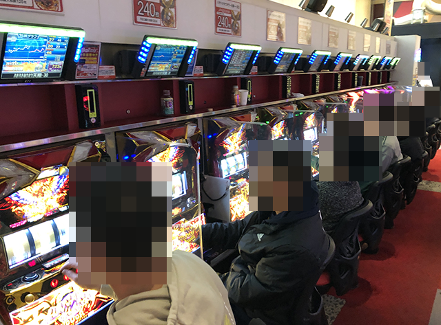 パチスロの状況をうかがうと、『ハナハナホウオウ~天翔~-30』でたくさんのプレイヤーが遊技を楽しんでいた。