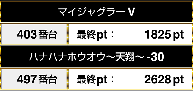 おなじくボーナスタイプである『マイジャグラーV』には、1825ptを記録する台があった。