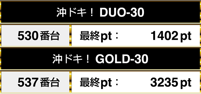 『沖ドキ!GOLD-30』の537番台は3235pt!!