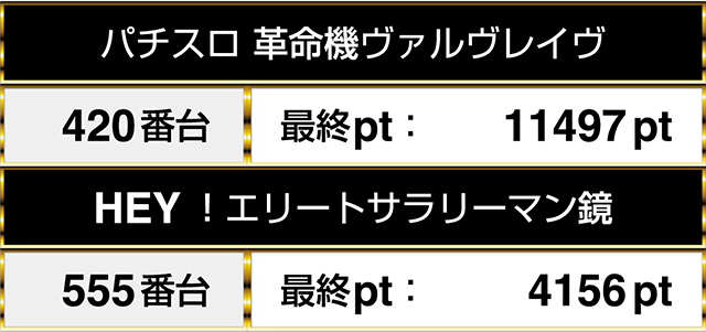 『HEY!エリートサラリーマン鏡』の555番台は4156ptでこの日を終えた。