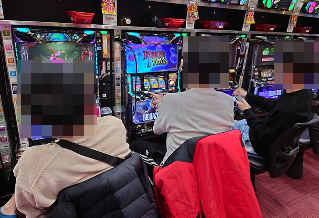 16時頃のパチスロでは、『パチスロ バイオハザード RE:2』の盛り上がりが大きかった。