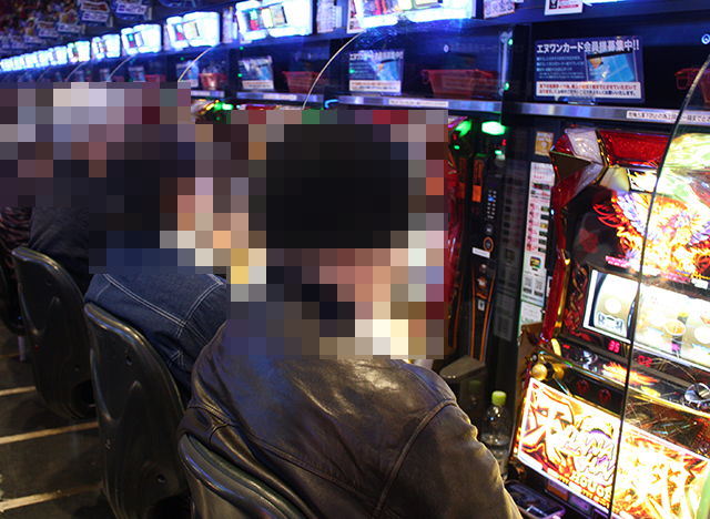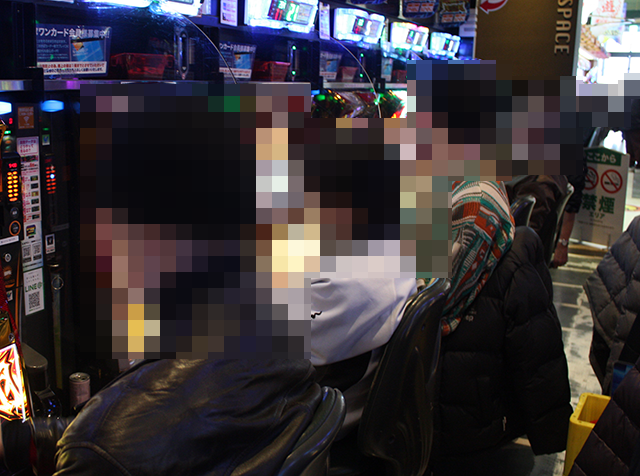 あちこちに笑顔が広がっているなかでも、「ハナハナホウオウ~天翔~-30」で遊技をおこなっているプレイヤーが存在感アリ。