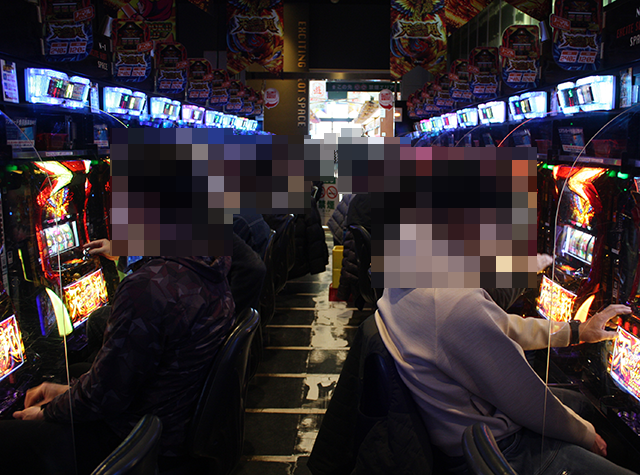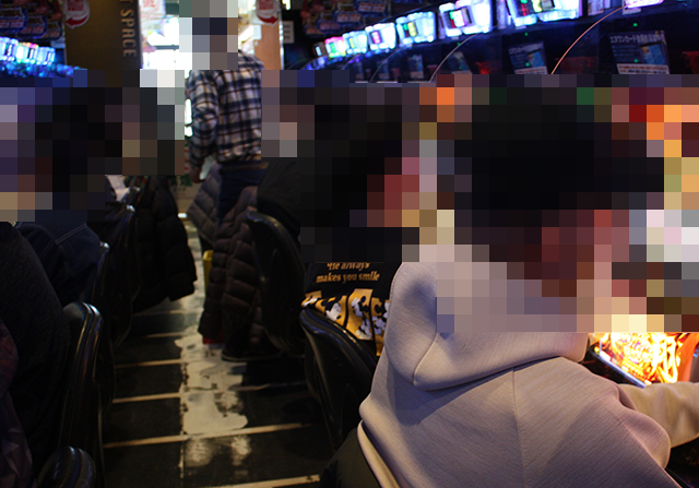 9台ずつにわかれて設置されており、取材時は8割以上が稼働。シマの右をみても左をみても笑顔が目に入る状況となっていた。