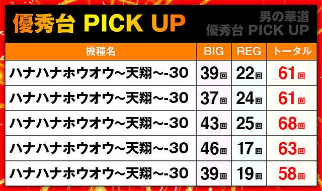 たくさんのプレイヤーに楽しまれていた「ハナハナホウオウ~天翔~-30」から5台を選んだ。