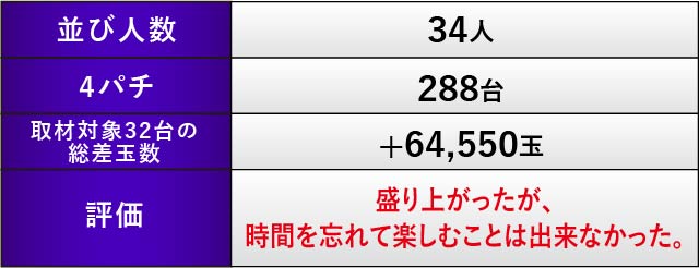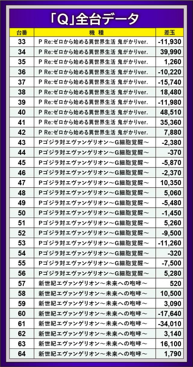 『P Re:ゼロから始める異世界生活 鬼がかりver.』は40番台+48,510玉を筆頭に、34番台+39,990玉・41番台+35,360玉という大きな盛り上がりが披露された。これに続こうと『Pゴジラ対エヴァンゲリオン〜G細胞覚醒〜』『新世紀エヴァンゲリオン〜未来への咆哮〜』も多くの万発OVERを発生させ、島の活気と熱気は最高潮だったと言える。また半数がプラス差玉を築いていたのも見逃せないポイントだ。