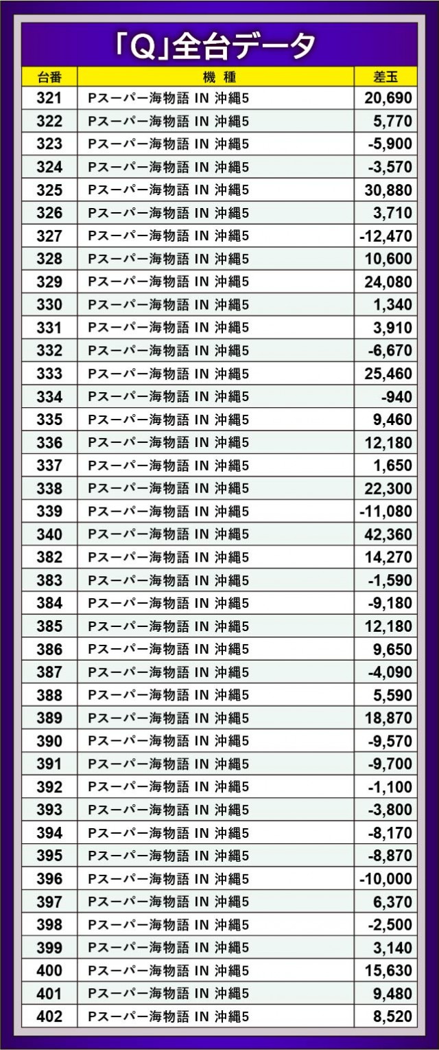 シリーズ最新機種が登場しても、『Pスーパー海物語 IN 沖縄5』は愛され続けていた様子だ。そんなファンの期待を一身に背負ってか、325番台+30,880玉や340番台+42,360玉という突出した熱気を確認できた。他にも1~2万発OVERが多く、冬の寒さを吹き飛ばすほどの熱さが島を包み込んでいたことだろう。6割近い台がプラス差玉を築き、これからもファンを喜ばせる機種であるのは間違いない。