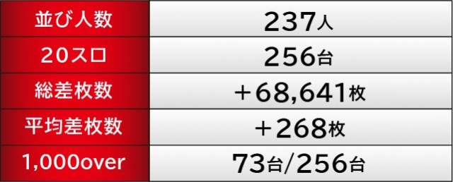 『パチスロ 革命機ヴァルヴレイヴ』594番台+17,968枚という圧倒的な記録が飛び出せば、『Lバキ 強くなりたくば喰らえ!!!』623番台+7,195枚・『パチスロこの素晴らしい世界に祝福を!』657番台+6,724枚など、各所で突出した熱量が離れていた。万回転OVERを達成する台も見られ、館内は活気と熱気に包まれていたのが如実に窺える。もちろん数多くの4千枚OVER台の活躍も目につき、ファンは有意義な時間を過ごしていたと言えるだろう。