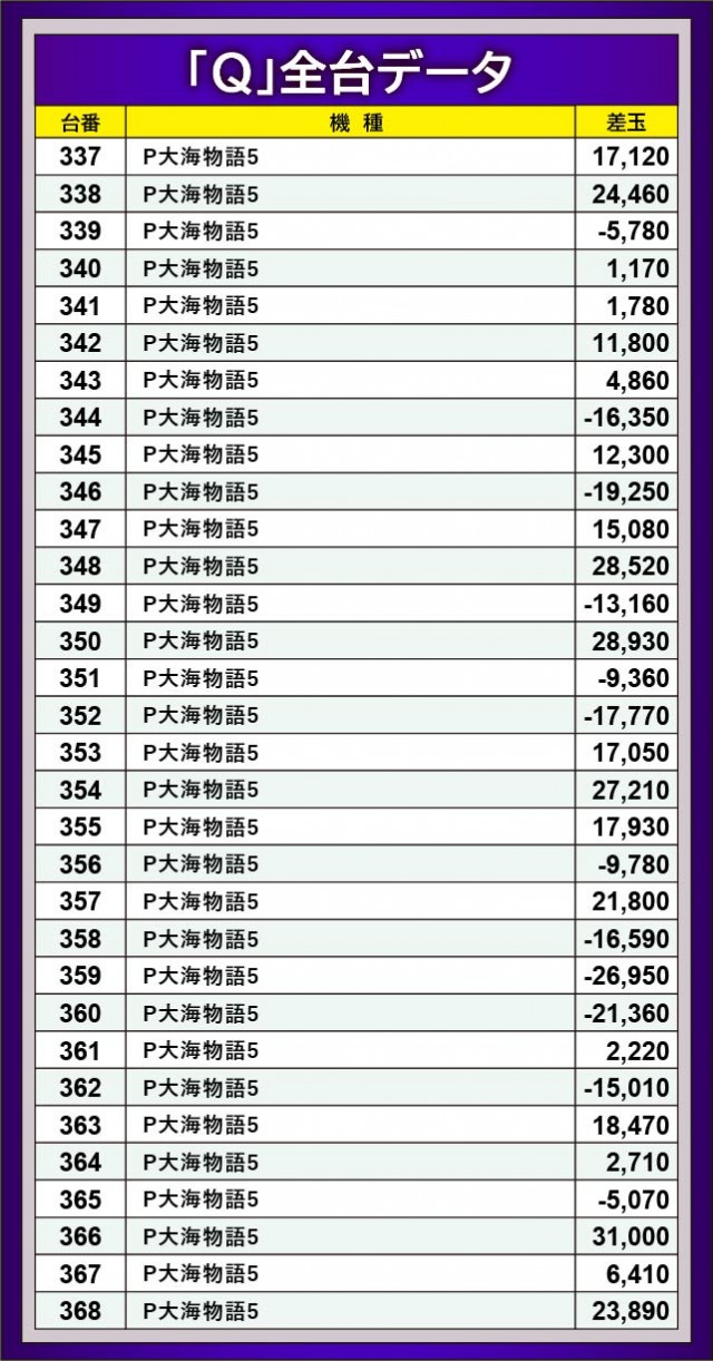 なお注目の『P大海物語5』に関して、こちらでも348番台+28,520玉や366番台+31,000玉といった記録が発生。万発OVERが多数発生しており、多くのファンがじっくりと打ちんだ結果がハッキリと生まれているため、同機種も今後の要観察対象として認識しておく必要があるかもしれない。