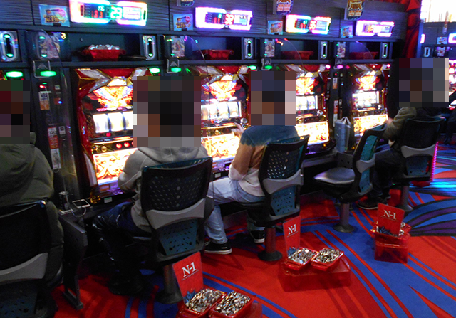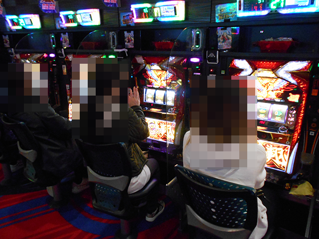 パチスロのあちこちで、遊技を満喫しているといったプレイヤーを目にした。
