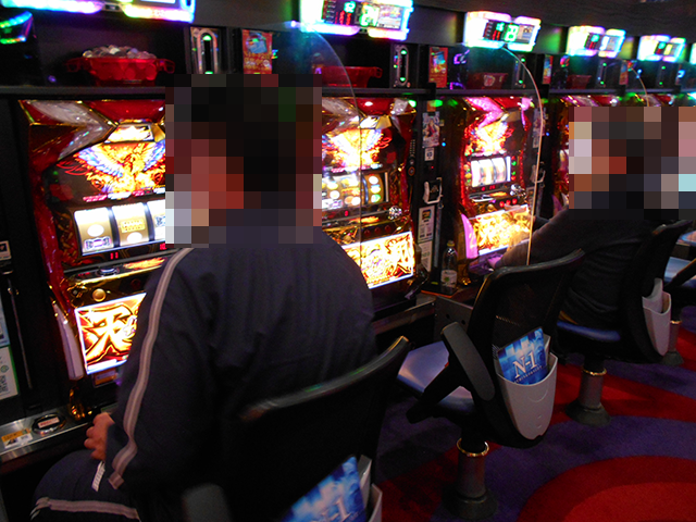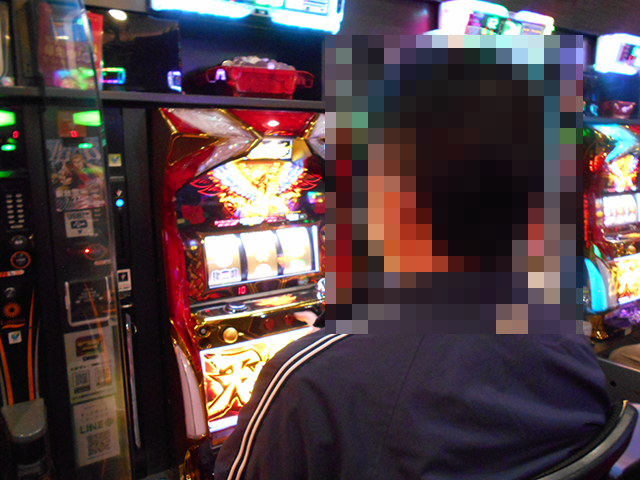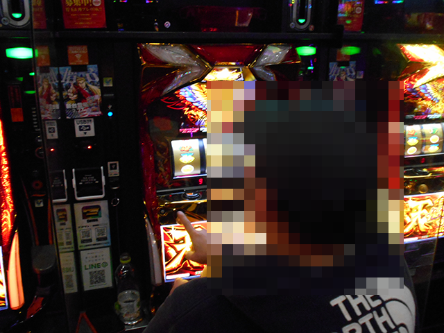また、5円パチスロの「ハナハナホウオウ~天翔~-30」でも楽しそうに遊技をおこなっている姿を確認。