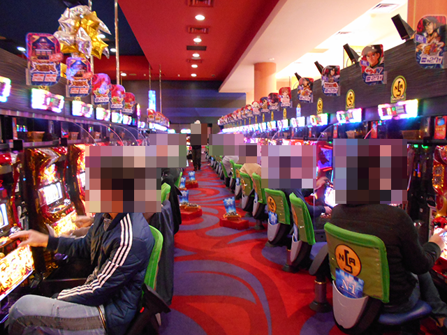 沖スロをはじめ、多くの機種が楽しまれており、パチスロ全体が明るいムード。