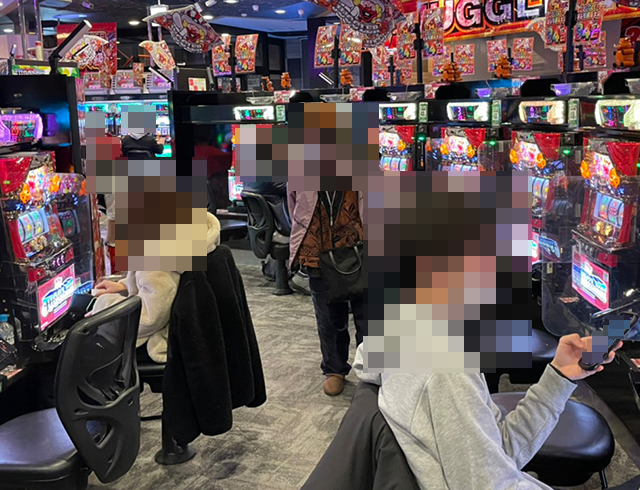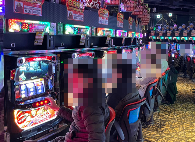 うれしそうに遊技をおこなっている姿は、盛り上がりの大きいパチスロのなかでもとくに目をひかれるものであった。