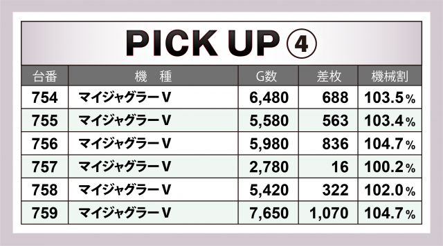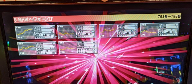 まずは優秀30台のPICK UPから。30台全てが差枚数+2千枚以上を達成、+3千枚以上は17台、+4千枚オーバーは7台、+5千枚オーバーは3台となった。後述する5機種の横並び好況スポット以外では、全国各地で好成績を残している『パチスロ 革命機ヴァルヴレイヴ』がこの日も+8千枚に迫るハイスコアをマークした。また下記に挙げる横並びと重複する機種だが『押忍!番長ZERO』が+6千枚を突破&『マイジャグラーⅤ』が+5千枚オーバーを記録。さらに『パチスロ モンスターハンターワールド:アイスボーンTM』は+4千枚クラス×2&3台の合計で+1万1千枚をクリアした。