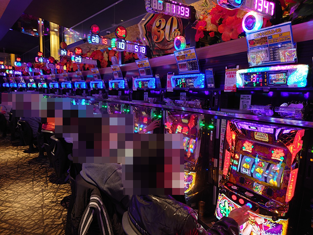 「沖ドキ!GOLD-30」をはじめ、パチスロのあちこちが活況! 機種を問わずに、心から遊技を楽しんでいるようにみえた。
