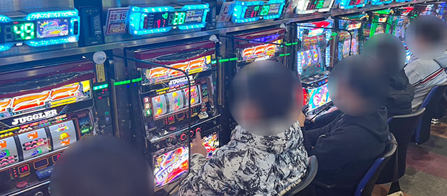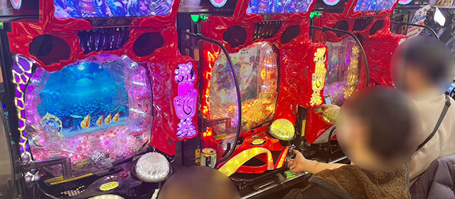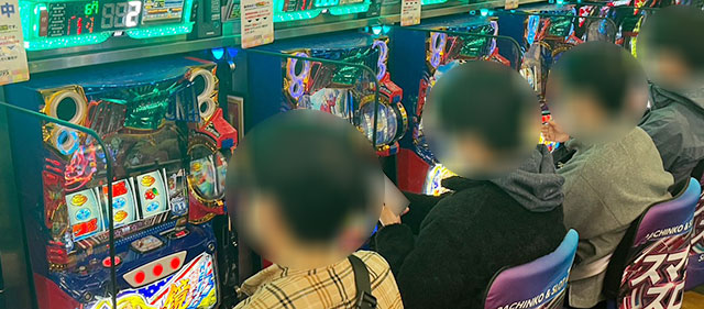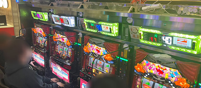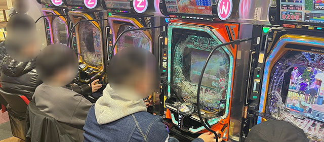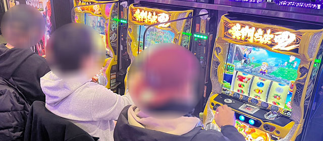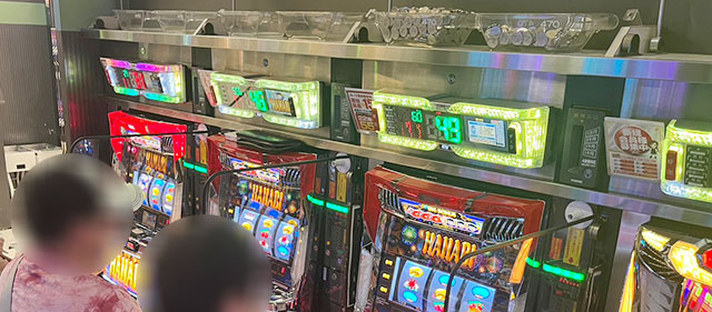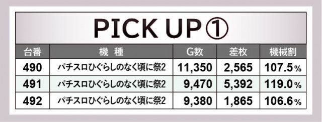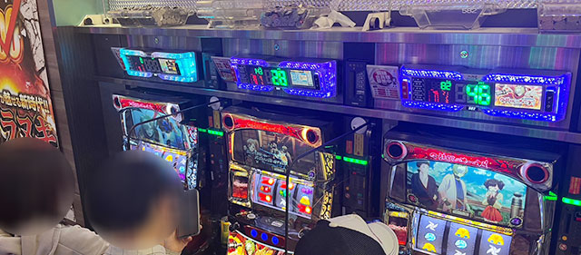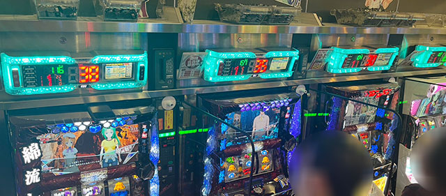 『パチスロひぐらしのなく頃に祭2』491番台+5,392枚・『HEY!エリートサラリーマン鏡』588番台+3,654枚・『パチスロペルソナ5』588番台+3,654枚など、各機種から熱気の放出を確認できる。いずれの機種もドル箱に手が伸びる光景が印象的で、明らかな好感触にファンは口角を緩めていたのかもしれない。