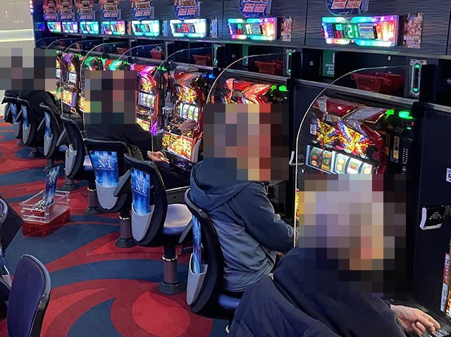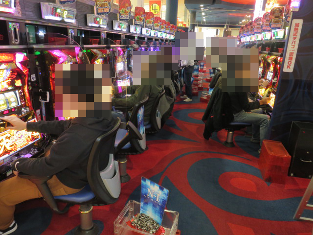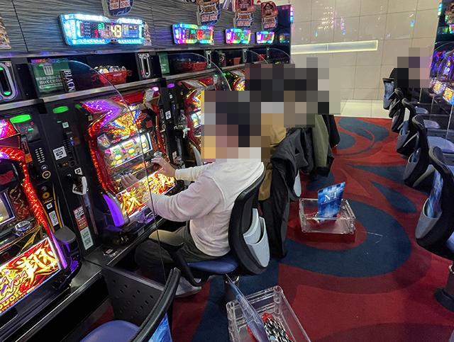 パチスロコーナーのあちこちで、活気のある場面に遭遇!