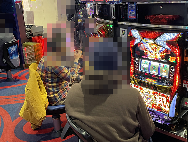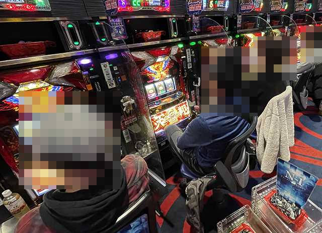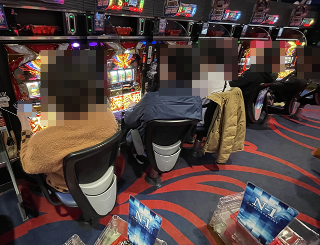 取材時は空き台が少なく、笑顔で遊技をおこなっているプレイヤーが並んでいる状況。