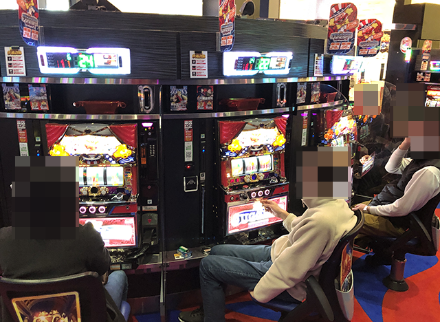店内の状況をうかがうと、あちこちに遊技を楽しんでいるプレイヤーの姿があった。