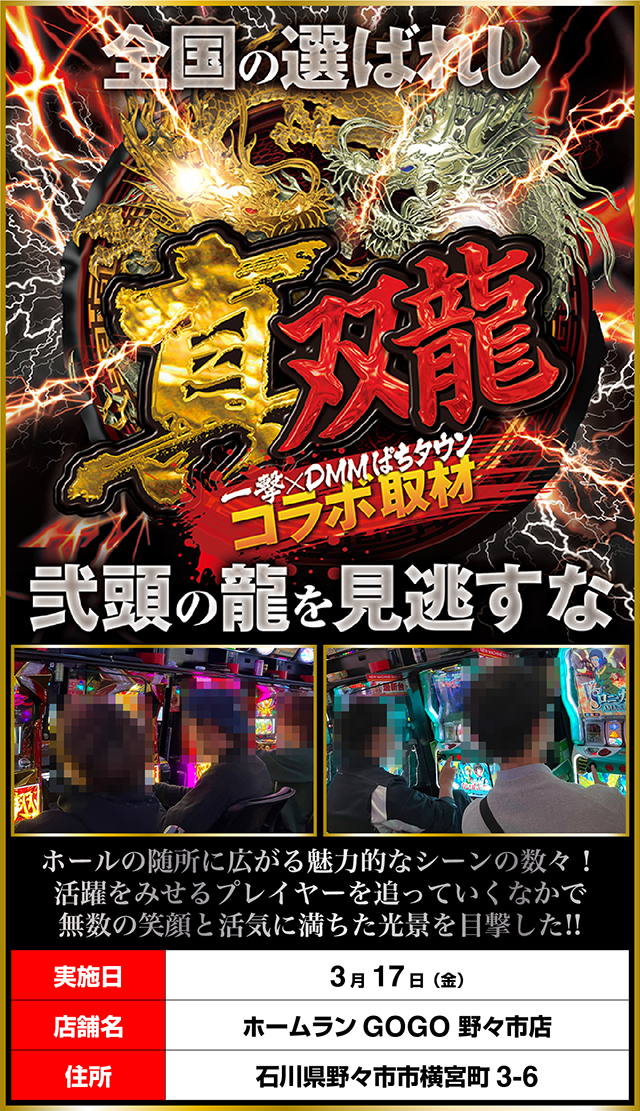 「真双龍」をおこなったのは、カラフルな外観も特徴的な「ホームランGOGO 野々市店」。