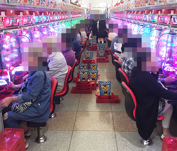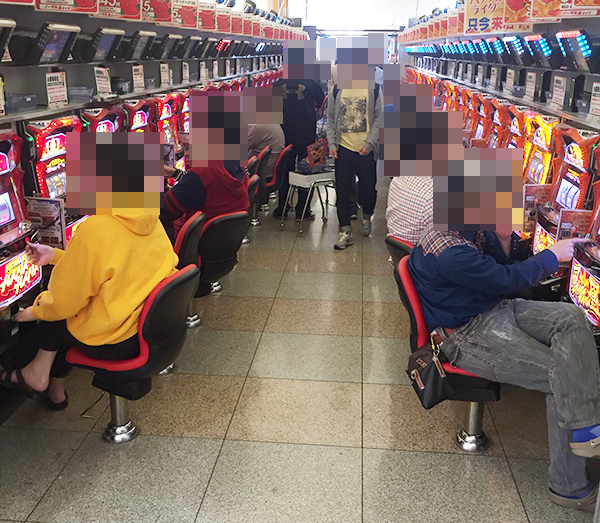 開店直後は、20円パチスロでは「バジリスク~甲賀忍法帖~絆」やハナハナシリーズ、4円パチンコでは「ぱちんこCR真・北斗無双」などが活気に満ちあふれていた。