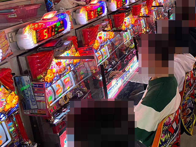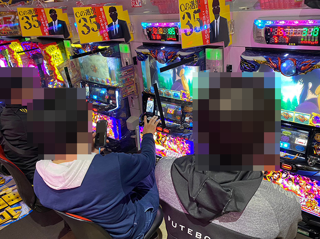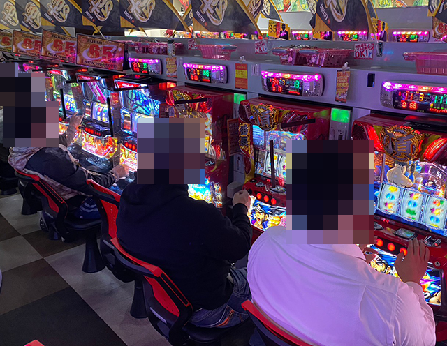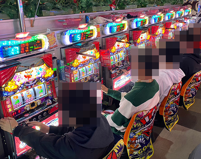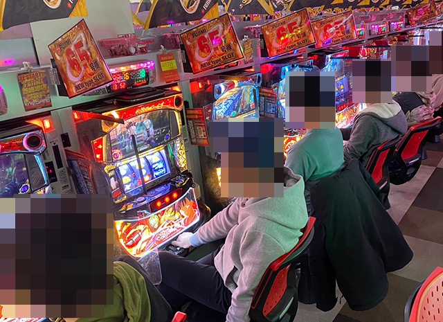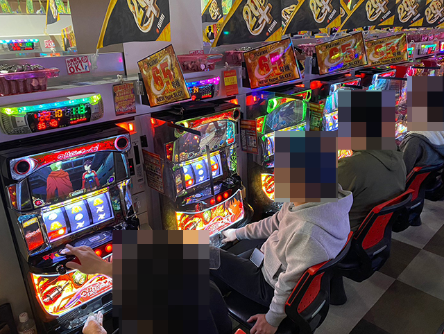 遊技を満喫しているといった姿は、並びで設置された『SLOT劇場版 魔法少女まどか☆マギカ[前編]始まりの物語/[後編]永遠の物語』と『パチスロ戦姫絶唱シンフォギア 勇気の歌』でも目にした。