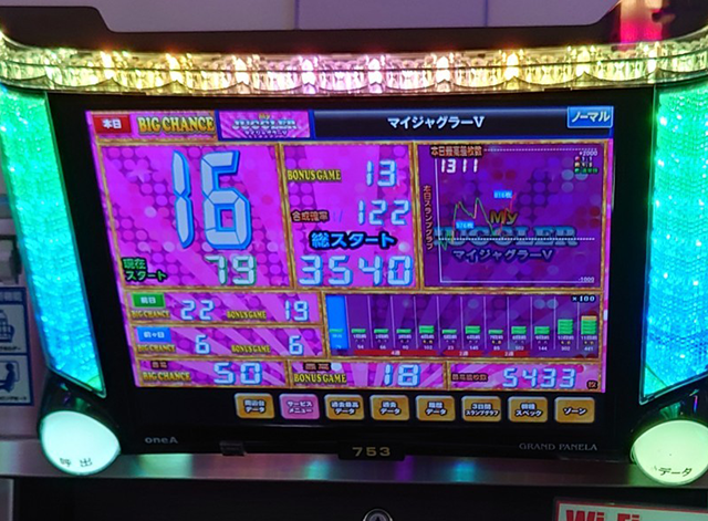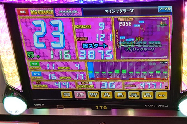 笑顔で彩られた『マイジャグラーV』は、黄金郷と呼ぶにふさわしかった。