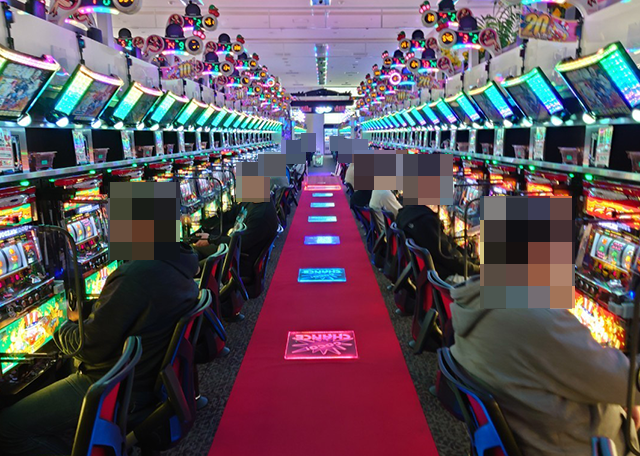 7割以上が埋まるほどに稼働率が高く、たくさんのプレイヤーが遊技を楽しんでいた。