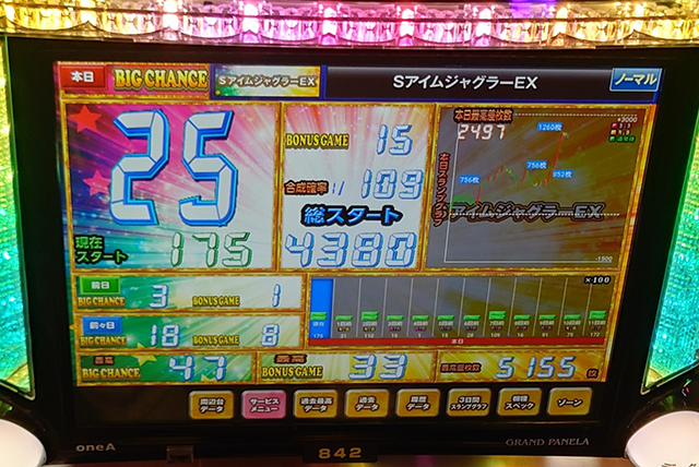 データカウンターをチェックすると、842番台のボーナス回数が40回を記録。