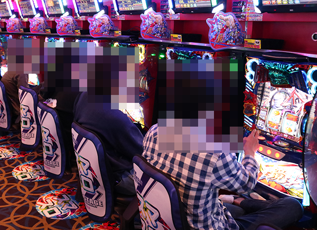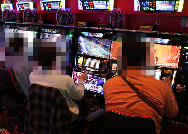 「パチスロ モンスターハンターワールド:アイスボーンTM」の稼働率も高く、にぎやかな状況。