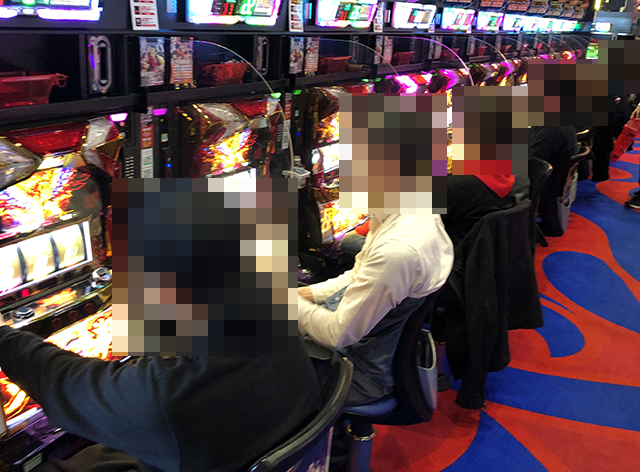 明るい表情で遊技をおこなう姿が並び、シマ内は大きな盛り上がりに包まれていた。