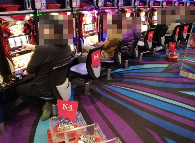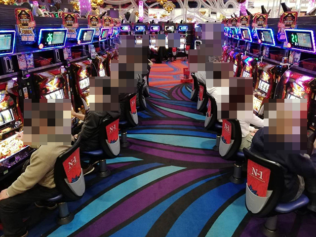 取材時は70%以上の台が稼働しており、シマ内はにぎわいに包まれていた。