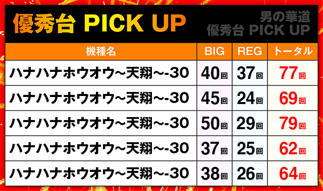 「ハナハナホウオウ~天翔~-30」の複数台がボーナス回数60回以上!
