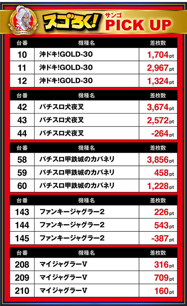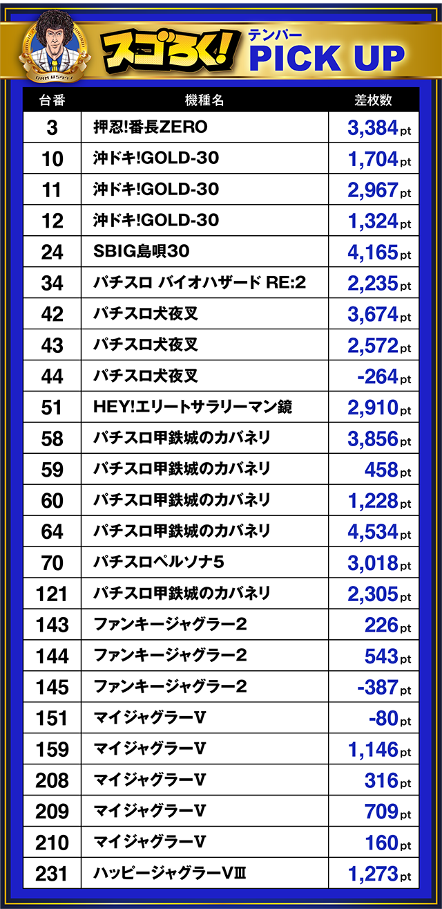 3番台の「押忍!番長ZERO」と70番台の「パチスロペルソナ5」も気に入っていたんだが、どちらも3,000ptを超えたな。