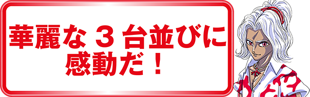 オレも華麗な3台並びをみつけてきたから、お楽しみに。