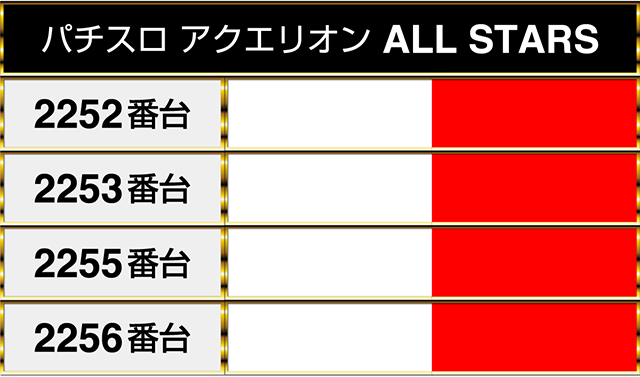 4台設置の『パチスロ アクエリオン ALL STARS』と『パチスロ 新鬼武者2』はすべての台がプラスptとなった。