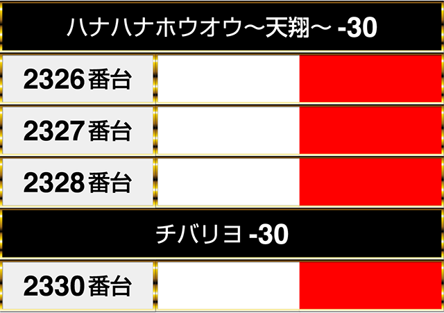 並びで設置されており、閉店時には2326番台から2330番台までが連なってプラスpt!!