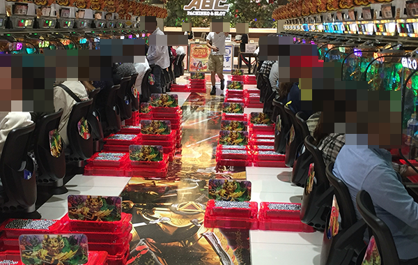「ぱちんこCR真・北斗無双」や新台の「CRガールズ&パンツァー」なども人気となっており、たくさんの場所からにぎわいが感じられた。