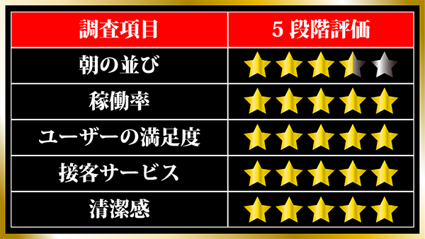 大勢のプレイヤーを素敵な笑顔にする遊技面、工夫や設備、サービスなどが素晴らしい形で共存しているホールであった。