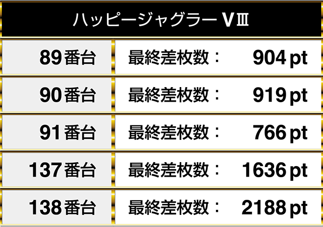 最終的には5台以上がプラスptとなり、137番台は1636pt、138番台は2188ptを記録!