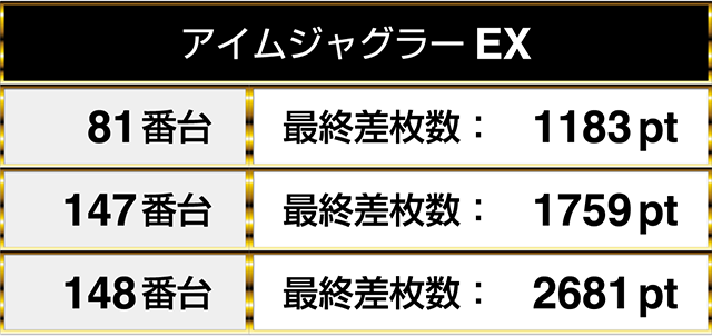 『アイムジャグラーEX』は3台以上が1000ptを上回った。