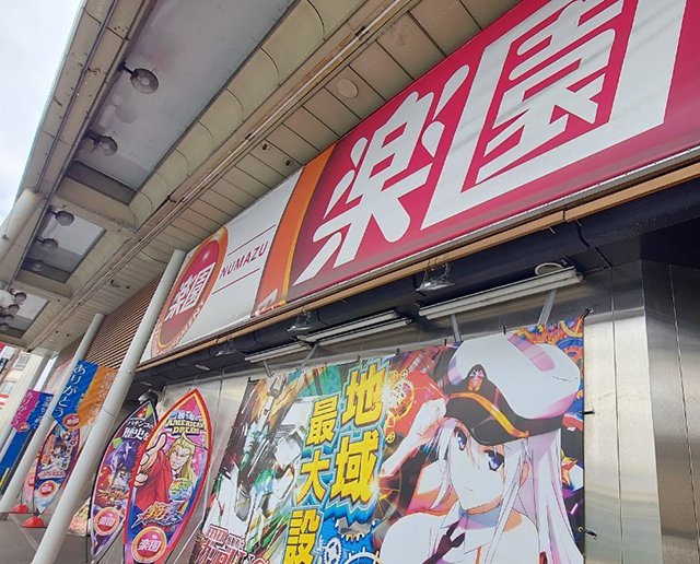 ボーナスタイプをはじめ、さまざまな機種が楽しまれていた「楽園沼津店」。
