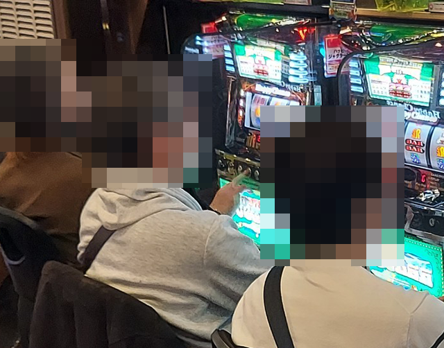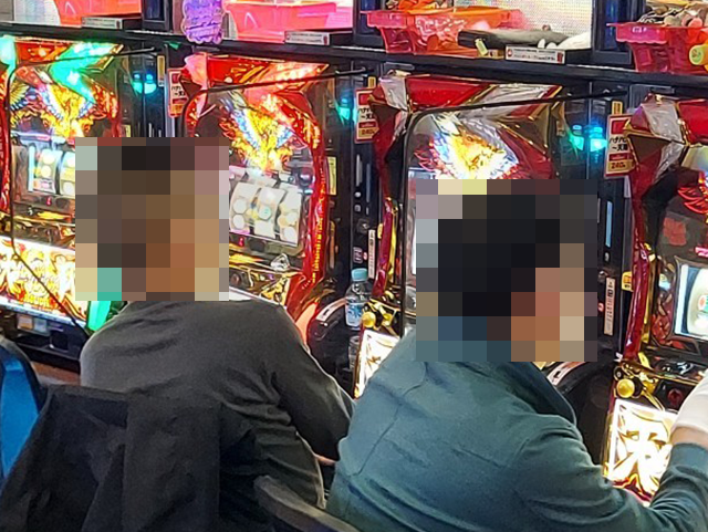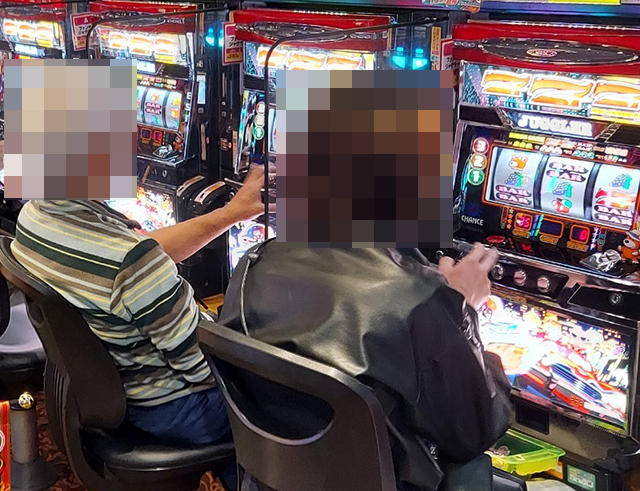 夕方頃のパチスロでは、ジャグラーシリーズとハナハナシリーズに笑顔が広がっていた。